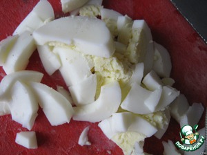 Мелко режем варёные яйца.
