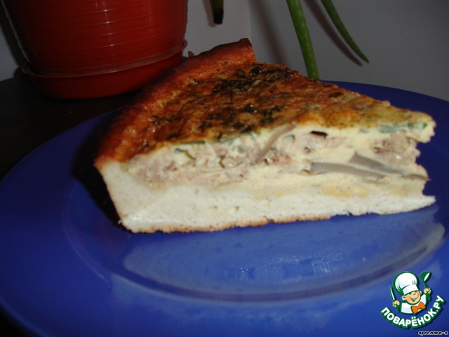 Предлагаю рецепт очень вкусного пирога с жареным тунцом, луком и грибочками, при таком приготовлении пирог не имеет сильно выраженного вкуса тунца.