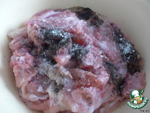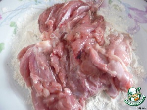 Куриное мясо сначала панируем в муке, перемешанной с сушеным базиликом.