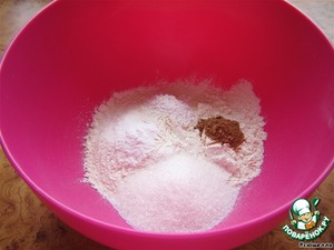 В большой чаше смешиваем муку, соду, разрыхлитель, соль, корицу, сахар (80 г - это чуть меньше половины стакана) и ванилин. С ванилином будьте осторожны: если он натуральный, то слишком большое количество сделает блюдо горьким и непригодным к употреблению. Потому в рецепте указано - на кончике ножа. Ванильного же сахара можно добавлять и побольше.