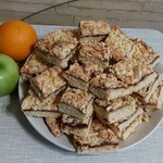 После выпечки обязательно охладите пирог и нарежьте его небольшими квадратиками.