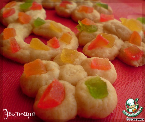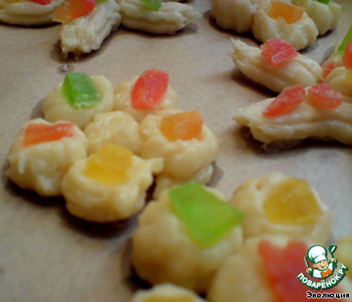 Вообще, это рецепт нежного и хрупкого печенья «Венское сабле», но стоит его чуть дополнить цукатами, и изменить насадку кондитерского шприца, как на противне «распустились» яркие цветы к 8 марта. На сайте поисковик выдал один рецепт венского сабле, но он отличается технологией приготовления.