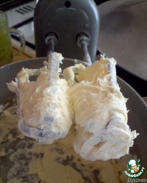 Размягченное масло взбиваем миксером. Добавляем соль, сахарную пудру, ванилин. Снова взбиваем. Добавляем белок и взбиваем 1 минутку.