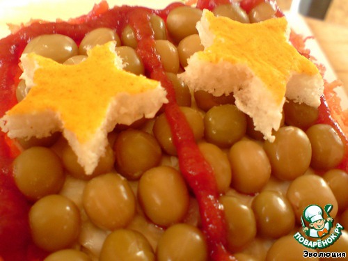 Верхний слой – зеленый горошек.