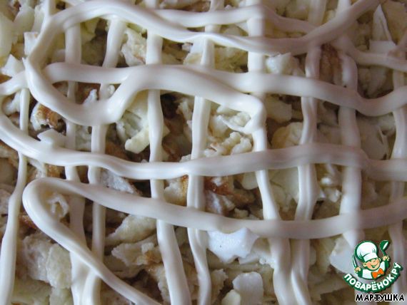 Майонез обязательно кладем на яички - на капусту ни в коем случае, иначе салат "потечет". -