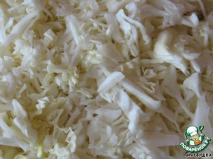 Шинкуем капусту. Солим, мнем ручками до момента пускания сока.