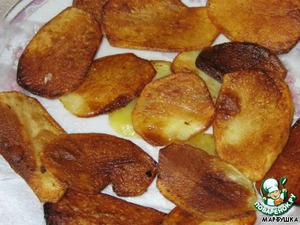 Жарим в масле с двух сторон. Выкладываем на салфетку, чтобы масло лишнее сбежало.