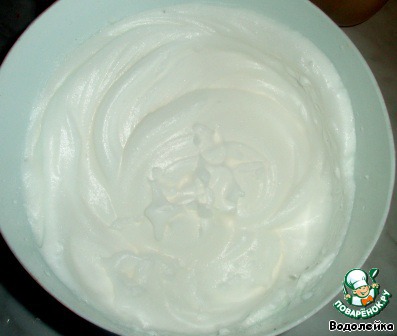 Дальше взбиваем в крутую пену белки + немного сахара (я положила так же пару ст.л.). |