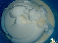 Взбиваем сливки с небольшим количеством сахара. Сахар добавляем по вкусу (я добавила пару ст.л.) с учетом того, что в состав заварного крема так же входит сахар и крем на вкус сладкий. |
