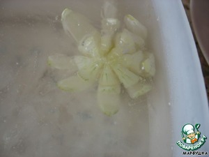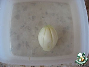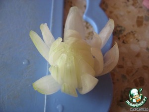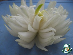 Затем надо положить лук в холодную воду - он должен раскрыться через 2 часа.