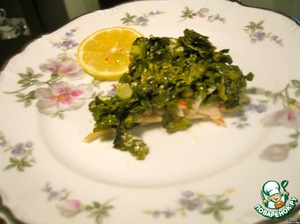 Рыба, покрытая слоем шпината и зелени. Изумительный вкус, тает во рту. Советую попробовать!!!