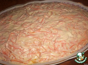 На сырок выкладываем морковку.