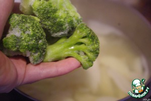 И добавляем брокколи. У меня замороженная, я не размораживала.