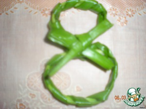 Делаем кольцо из лука. Если лук рвётся, то его можно обдать кипятком. Тогда он будет более податливым.