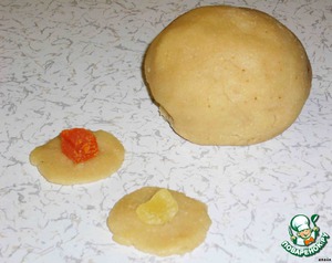 Отщипнула кусочек марципана и положила во внутрь цукаты (количество марципана можете добавить по вашему вкусу).