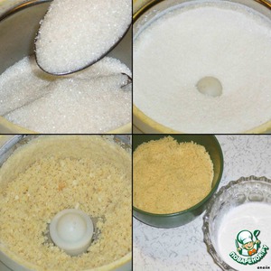 Сделала из сахара сахарную пудру, перемолола высушенный в микроволновке миндаль.
