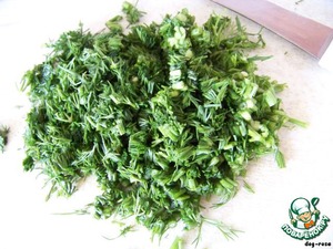 Смешиваем все составляющие для теста (молока можно добавить больше или меньше, в зависимости от того, какой толщины хотим получить оладьи), за исключением зелени, добавляем немного соли, даем постоять 20 минут.