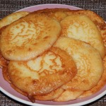 Жарим оладьи. У меня из указанного количества продуктов получилось 16 штук.