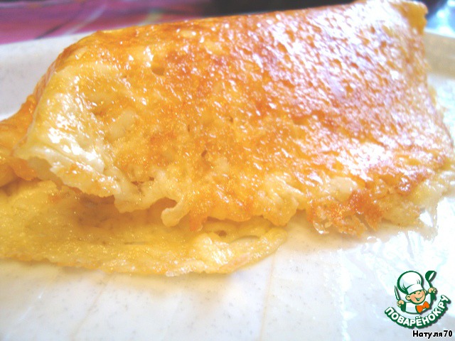 Сыр натереть, расплавить на сковороде, немного остудить.