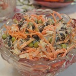 Мама сегодня утром позвонила и обрадовала, что нашла новый рецептик салата, а вечером пришли гости. Вот и проэкспериментировала. Эксперимент удался, на завтрашнее утро салата не осталось, съели все. Еще и рецепт переписали.