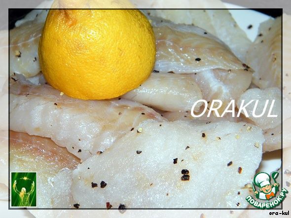 Рыбу порежем на небольшие кусочки и сбрызнем лимонным соком, посолим и поперчим.