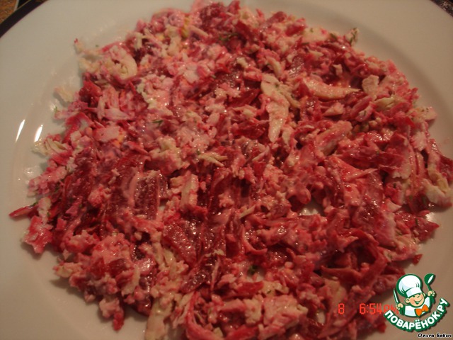 Очень необычное название, как и сам салат. Попробуйте, честное слово, - не пожалеете!