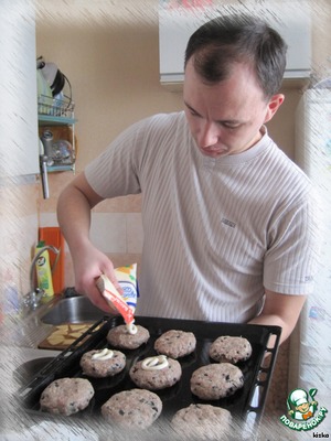 Сформировать котлетки, выложить на лист, смазать их майонезом.