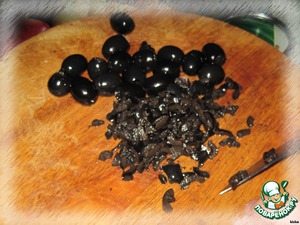 Маслины мелко нарезать.