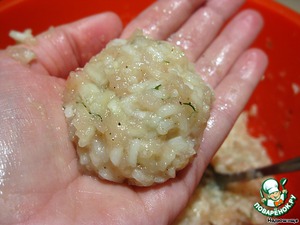 Отвариваем до готовности рис и смешиваем с фаршем. Если рис получился клейким - это к лучшему.
