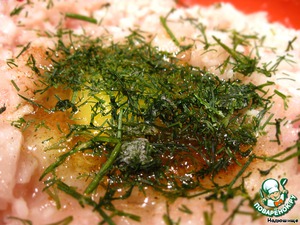 добавляем свежую зелень (либо замороженную) и хорошо перемешиваем.