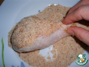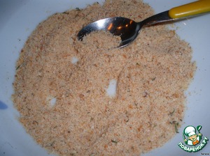Приготовить смесь из сухарей, паприки, тмина и соли.