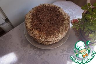 Берем сметану все 400 г. добавляем 0,5 стак. сахара. Сливки взбиваем, как написано в инструкции. Коржи пропитываем сиропом. Обязательно!!! На первый корж выкладываем слой сметаны, потом слой сливок