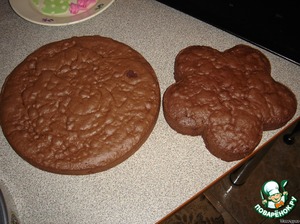 Выпекаем два коржа диаметром 28 см и 2 поменьше (у меня форма цветка) при 200 град. 15- 20 мин, проверяю спичкой. На фото по одному примеру.