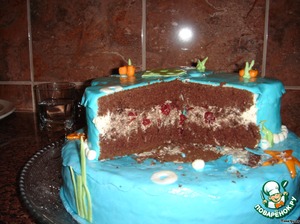 Испекла такой тортик для своей подружки доченьки на двухлетие. По ее просьбе коржи по рецепту "Пьяной вишни". Если готовлю для семьи, то беру половину всех ингредиентов на форму диаметром 28 см.