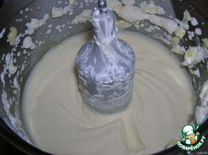 Для начинки белки отделить от желтков. Смешать желтки, творог, манку, ванилин, 100г масла размягченного. Взбить.