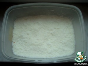 Предварительно залить кокосовую стружку кипяченым, горячим молоком и оставить на пару часов. Молоко должно чуть-чуть покрыть стружку. -