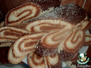 2 - в виде рулета. Для рулета положить два коржа друг на друга (коричневый на белый или наоборот - белый на коричневый). Вкус от этого не меняется, единственное - в разрезе они будут смотреться по-разному.