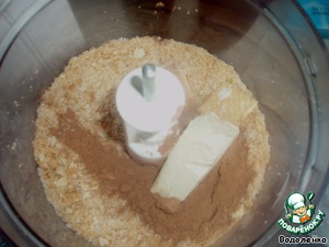 Для этого измельчить в блендере (или комбайне) печенье + сахар + масло сливочное + какао -