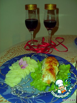 Дебют моего любимого мужа!!! Делали для одного конкурса, представляем на другой!( условия конкурса не дочитали). Куриное мясо с вкуснейшей начинкой! Попробуйте, не пожалеете!!!!