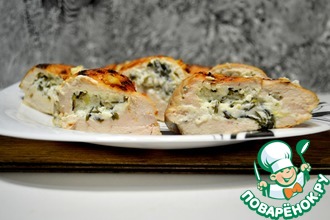 Дебют моего любимого мужа!!! Делали для одного конкурса, представляем на другой!( условия конкурса не дочитали). Куриное мясо с вкуснейшей начинкой! Попробуйте, не пожалеете!!!!