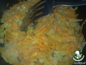 Лук очистить, мелко нарезать. Морковь очистить, натереть на крупной терке. Овощи спассеровать до золотистого цвета лука в сливочном масле.