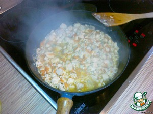 Берем глубокую сковородку, наливаем оливковое масло и разогреваем.