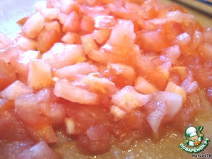 Помидор нарезать маленькими кубиками. Слегка обсушить. Излишняя влага ни к чему.