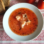 В суп положить рыбу, луково-томатную смесь, посолить, довести до кипения и варить до готовности рыбы примерно 20 минут. За 5 минут до окончания варки добавить лавровый лист и перец горошком.