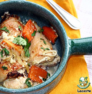 Ароматная курица, запеченная в сливочно-овощном соусе.