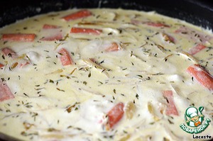 Влить сливки, перемешать, довести до кипения и снять с огня.