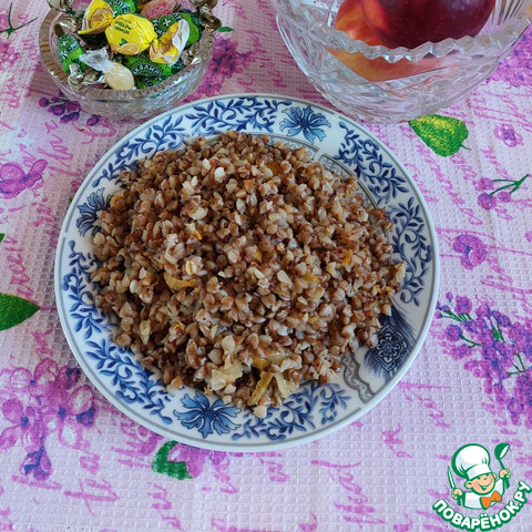 Добавить сваренную гречку, перемешать и минутки две потомить. Приятного аппетита!