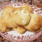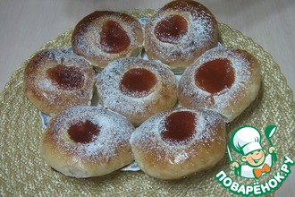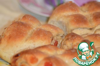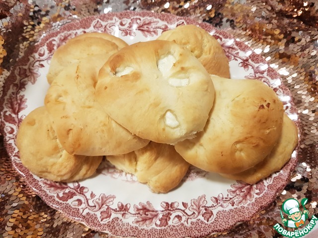 На противень положить бумагу для выпечки, смазанную маргарином, выложить булочки, подождать минут 20, смазать смесью яйца с водой, и выпекать при температуре 190 град. 20-25 минут