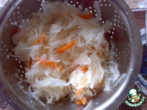 Пока рыба жарится, 5-7 мин отвариваем квашеную капусту.