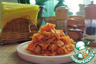 1. Капусту нарезать соломкой. В сковороде разогреть 2 ст. л. растительного масла, положить капусту, влить немного воды и тушить 10-15 минут.